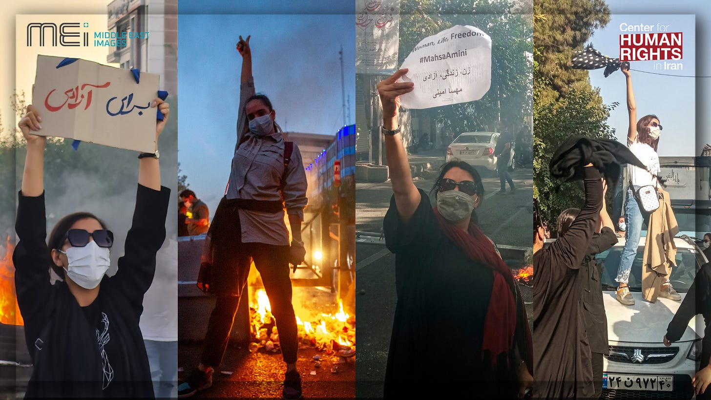 Photos from the “Women, Life, Freedom” movement begun in September 2022. (See HERE and HERE)