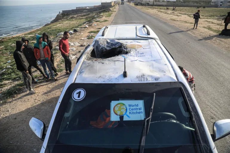 By that time, an Al Jazeera investigation was already revealing that the shelling of the convoy of World Food Kitchen vehicles on 1 April was “intentional.”